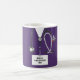 Apreciação de enfermeira criativa ou graduação mantém a caneca de presente, com esfregões de hospital roxos. Para personalizar o texto de edição para adicionar o nome da enfermeira.
