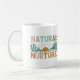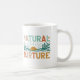 Um design de caneca de café com o texto "Nurtura Natural" num design de várias cores. As letras podem ser divertidas e sobrepostas, ou ousadas e empilhadas. As cores podem ser brilhantes e reminiscentes da natureza, como verdes, azuis e castanhos.