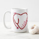 Comece seu Dia de os namorados com uma caneca de café personalizada adornada com um estetoscópio vermelho de um lado e as palavras "Café, Esfregões e Luvas de Borracha do outro. Adicione seu nome dentro ao coração.
