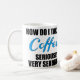 Caneca de café bonito que diz "como I toma meu café seriamente muito seriamente" no preto e se ilumina - texto azul.