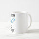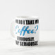 Caneca de café engraçada com texto azul e preto da