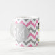 Canecas de café engraçadas da prescrição com monograma personalizado. Escreva sua própria prescrição! Adicione seu nome, seu doutor, seu café favorito e mesmo suas próprias instruções! Faça se engraçado, faça-lhe seu! Teste padrão branco, cor-de-rosa e cinzento de Chevron.
