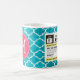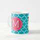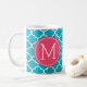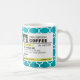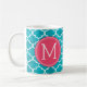 Canecas de café engraçadas da prescrição com monograma feito sob encomenda. Escreva sua própria prescrição! Adicione seu nome, seu doutor, seu café favorito e mesmo suas próprias instruções! Faça se engraçado, faça-lhe seu! Branco e teste padrão azul de Quatrefoil do Aqua. Adicione seu próprio monograma feito sob encomenda! Selecione suas próprias pias batismais!