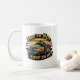 Espírito de combate a incêndios da vintage do canal com esta caneca corajosa! Apresenta uma cena do pôr do sol aflita, retrô-estilo, com um caminhão de bombeiros brancos como peça central. O caminhão está coberto de grafite e a cena pregada com o lema "Encontre-os Quentes, Deixe-os Molhados" Esta caneca única é um presente perfeito para bombeiros, entusiastas de caminhões de incêndio, ou qualquer um que ame um toque de talento de vintagem.