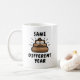 Uma caneca de natal humorística com um simples fundo branco que pode ser mudado para qualquer cor, um triste gráfico vetorial de desenho animado, a "mesma porcaria diferente do ano".
