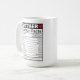 Adicione um pouco de humor à sua rotina matinal com esta caneca de "Fatos Nutricionais da Mãe"! Com todo o essencial — como amor, paciência e cafeína — esta caneca é uma maneira divertida de começar o dia. Seja para café, chá ou uma pausa bem merecida, isso faz um presente incrível para Dia de as mães, aniversários, ou só porque.