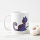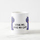 Um gato cartoon listrado, azul e laranja, é a característica em cada lado desta caneca de "amar meu gato". O texto preto no meio diz "Ame-me, ame o meu gato!" *Este design usa imagem © Graphics Fatory.com*