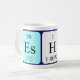 Eshal se soletrava como Es H Al (Alumínio de Hidrogênio Einsteinium) numa caneca para o cientista em você.