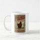 Um lado da caneca caracteriza o dirigible da escola do revestimento para a série do steampunk YA de Gail Carriger. O outro lado da caneca tem a galinha que de vime de explosão é o presente que se mantem no anúncio do estilo do vintage do revestimento.