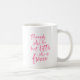 Caneca branca com uma escrita de pincel cor-de-rosa na moda da citação "embora ela seja apenas pequena ela é feroz" do Sonho de Uma Noite de Verão de William Shakespeare. *Observe que a Marca d'água do Zazzle que aparece na visualização de zoom NÃO aparecerá no produto impresso final. © Rosewood e Citrus