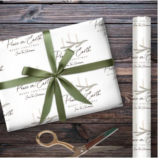 Elegante Script Peace na Terra Christmas Coffee Mug. Mostrado em verde, marrom e bronzeado em um fundo branco, mas todas as cores são editáveis. Escrito manual elegante com velas e galhos verdes desenhados à mão. Se você está procurando adicionar um nome, eu tenho uma versão personalizada na mesma coleção. © Kimbellish, LLC