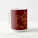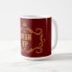 A caneca de café engraçada para o povo do país apresenta texto "silêncio" dourado e quadro de rico sobre fundo vermelho escuro. Uma maneira perfeita de lembrar os outros de parar de falar enquanto você está bebendo!