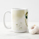Lindas flores esmeralda verde marfim branco e dourado com folhas douradas monograma caneca de café.