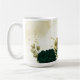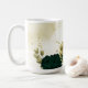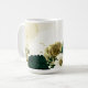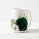 Belas esmeralda verde marfim branco e dourado flores com folhas de ouro caneca de café.