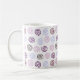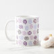 Esta caneca tem um design de arte em espirais em tons de roxo, azul claro e marrom, em um campo de branco. Se você quiser o mesmo design com cores diferentes, me mande uma mensagem.
