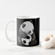 Um design de jogador de futebol com tema panda apresentando um panda vestindo uma camisa de futebol, pronto para chutar a bola. Perfeito para qualquer fã de futebol ou amante de panda!