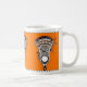 Caneca de lacrosse criativa com lax stick e bola em fundo laranja.