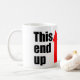 Chega de se preocupar com a extremidade da xícara de quem beber. Esta limpeza de caneca indica o fim comercial com uma seta vermelha brilhante.