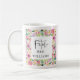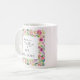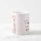 Esta caneca tem uma frente e trás diferentes. Um lado diz "Este anel me faz parecer noivo?" Um design com uma luxuosa design de caligrafia de luxo moderna, com um anel de noivado de diamante de ouro sobre um fundo cor-de-rosa pincelado. O outro lado apresenta um bonito quadro floral em torno da citação "A futura Sra." e do seu nome casado. Um belo presente para a noiva que logo será noiva.