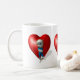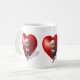 doce pequeno ciclone com olhos azuis grandes inclinados sobre um coração vermelho - esperando seu maior amor de sempre - muito romântico