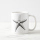 Uma ilustração em preto e branco de uma estrela-do-mar. Desenho a lápis.