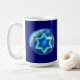 Uma imagem fractal de tom azul e roxo de uma Estrela de David (Magen David) incluída em uma espiral. Personalize adicionando seu próprio texto no lado oposto.