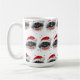 Pekingese Dog Breed Christmas Stars apresenta uma aquarela de um Pekingês com um chapéu vermelho de Papai noel e uma coleira vermelha de Natal.