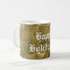 Estrelas Douradas Festivas Feliz Café de Natal Mug com texto: Feliz Férias