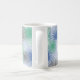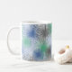 Esta caneca tem uma design moderna do século médio de estímulos em glaurosos (azuis), cinzas, azul claro e verde.