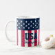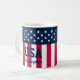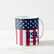 Celebre ser patriota começando o dia com sua bebida favorita no café da manhã e a bandeira dos EUA. Antigas estrelas de glória e listras com os EUA e seu nome. Estrelas Personalizadas em Stripes Azul Branco Vermelho Mangueira.