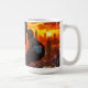 Bebê mantido por gorila sob o sol brilhando — arte emocional na caneca. Um design de tirar o fôlego mostrando um gorila segurando gentilmente um bebê ao pôr do sol — símbolo de força, inocência e harmonia. Perfeito para manhãs consciente.