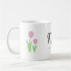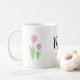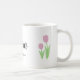 Uma caneca para o presente de aniversário da mãe, com design de tulipas