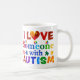Citação inspiradora de "Eu amo alguém com AUTISM" e um belo coração com quebra-cabeça autistas para apoiar crianças autistas e suas famílias por um futuro brilhante.