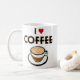 O design "I Love Coffee" apresenta um latte com espuma e um tipo de deco em negrito para um soco extra. Faz um presente de excelente para todos os consumidores de café em sua vida e para aqueles que amam essa bebida cafeinada.