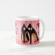 Design preto dos calçados do estilete da patente, com fundo listrado cor-de-rosa e citações engraçadas.
