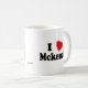Eu amo Mckenzie! É seu nome Mckenzie? Você tem um marido, um namorado, um membro da família masculino ou um amigo do homem que você saiba amores você? Ou você tem uma esposa, um namorada, um membro da família fêmea ou um amigo fêmea nomeados Mckenzie quem você ama profundamente? Em caso afirmativo, este "que eu amo" a caneca é exatamente o presente que você está procurando! As características de design a letra "mim" na rotulação preta com um coração vermelho na parte superior e no "Mckenzie" na rotulação preta na parte inferior.