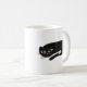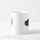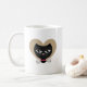 Ilustração de um gato preto olhando através de um coração de amor, Do outro lado o gato está deitado. Este design usa áreas de fazer, de modo que se você quiser mudar a cor branca de fundo você também precisará mudar os dois quadrados sob as patas de gatos.