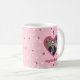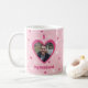 Esta caneca doce tem um padrão de corações em tons de rosa. Tem um coração nele e diz "Eu coração meu marido" de dois lados. Você pode personalizar a foto. Faz um presente de Dia de os namorados excelente.