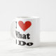 Camisas e novidades com letras negras e um grande coração vermelho. Isso diz "Eu amo o que eu faço." Presente no local de trabalho excelente.