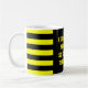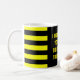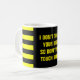 Esta design de caneca mostra o ditado "EU NÃO TOCO NO SEU MACO, ENTÃO NÃO TOQUE NO MEU!", junto com listras amarelas e pretas.