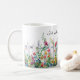 Lindas flores de aquarela ao longo de uma borda de cerca desta caneca. Para decoração sazonal em casa, as canecas são uma fácil mudança de um inverno aconchegante para uma estética primavera colorida. Imagem assistida por IA adquirida com licença comercial. Trabalho de arte: MokoDE
