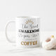 Excelente Acordando Café Mug: Brew Conhece O Dia Moderno. Experimente uma reanimação pessoal com cada gole! "O Despertar do Excelente começa com o Café" funde o fervoroso espírito de reviventes históricos religiosos com o ritual diário do consumo de café. Perfeito para sopros históricos, amantes de café, e aqueles que apreciam uma mistura de sabedoria e sabedoria. Pegue sua dose de iluminação e cafeína de uma só vez!