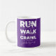 "Corra quando puder, caminhe quando precisar, rasteje se precisar; não desista!", caneca. O design exibe uma representação gráfica da inspiradora mensagem motivacional que inclui artisticamente gráficos de pessoas móveis desenhados dentro das palavras enfatizadas "RUN", "WALK" e "CRAWL". A cor de fundo pode ser alterada para a sua preferência desejada. Mostre-se determinado, nunca desista, atitude com os outros com esta impressão. Faz um excelente presente para a família ou amigos. Obrigado pelo apoio e pela visita à minha loja - UniquelyDistinct. Sinta-se livre para transferir este design em outros produtos do Zazzle.