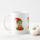 Fada de Natal fofo segurando uma caixa de presente em caneca de fundo branco. Aproveite o momento mais maravilhoso e mágico do Ano!