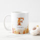 Folhas de aquarela elegantes enquadram o fundo dessa caneca enquanto a letra F é uma colagem de elementos festivos de queda de folhas laranja e amarelas, Personalize com um nome para torná-la exclusivamente sua.