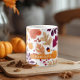 Aproveite sua bebida favorita no estilo aconchegante do outono com este design personalizado de outono, com um padrão moderno de folha e bolota em tons sazonais ricos de laranja, ameixa e ouro. Uma caixa de nome personalizável adiciona um toque pessoal, fazer-o o presente perfeito para a família, amigos ou para você. Excelente para café, chá, cacau quente, ou lattes de especiarias de abóbora, este design festivo é ideal para outono, Ação de Graças, ou doação de férias.