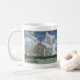 Caneca de café impressa com uma pintura da casa do Guardião da Luz no Farol de Cedar Point em Scituate, Massachusetts. Obra de arte: Aquarela sobre painel. Direitos autorais de Dominic A. White. Todos os direitos reservados.