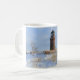 Caneca De Café Farol resistente numa costa rochosa no inverno