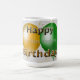 Esta brilhante e alegre caneca de café de aniversário feliz com balões verdes e dourados é um presente de aniversário excelente para os empregados.