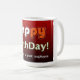 Esta brilhante e alegre Mug de Café Feliz Aniversário com fundo vermelho e letras brancas e laranja é um presente de Aniversário excelente para Funcionários.